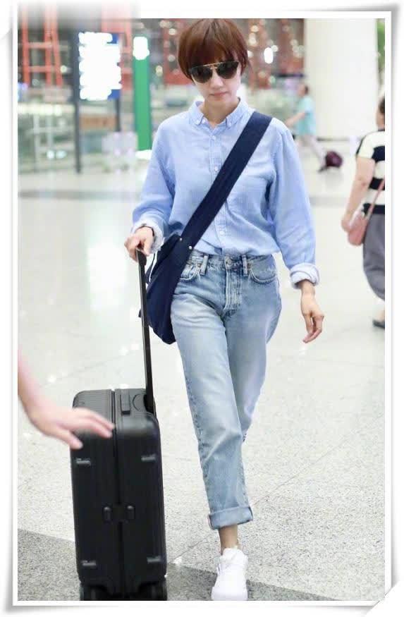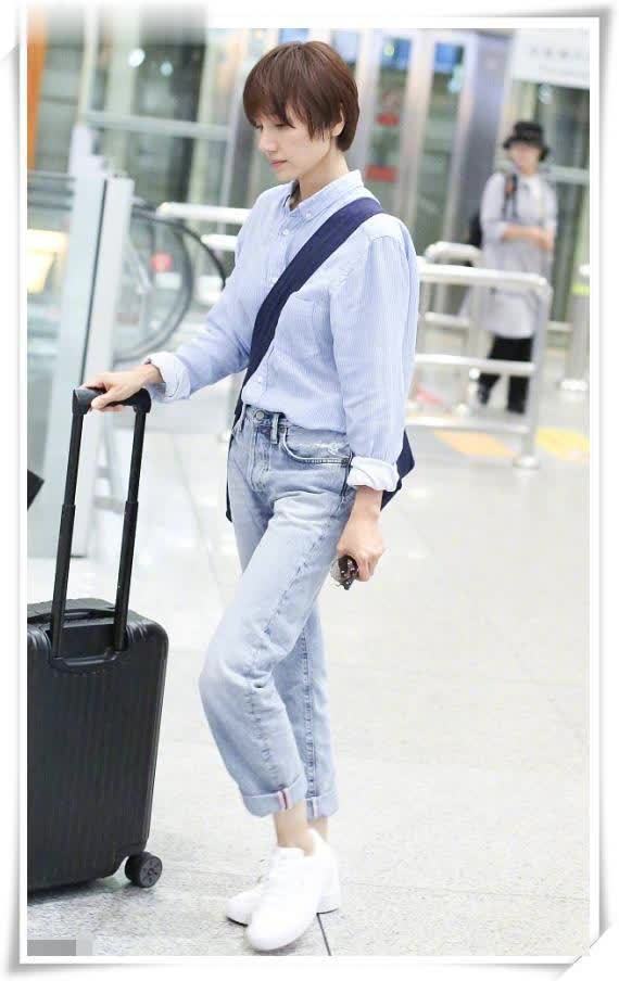 私下里,袁泉性格较为酷飒,话不多,却十分讨喜。她近期现身机场,造型从不似其他明星那般刻意摆拍,穿着也毫不浮夸。一件条纹蓝衬衫搭配牛仔裤,便给人清爽之感,而且她还素颜出镜,如此明星着实少见。